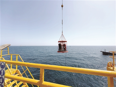 中央综合管理平台距离“深蓝1号”一海里左右,由一座海上钻井平台改造而成。这里是“1+N”养殖新模式里的“1”,也是彭勇和同事们的办公室、宿舍和餐厅。要登上这座宽86米、长74米、型深7.5米的巨大平台,绝大多数时间需要借助吊笼的帮助。