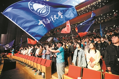“我是中国青年,我是祖国忠诚的儿女;五四火种在心,先辈夙愿在胸……”现场全体大学生集体喊出青春誓词,齐唱《歌唱祖国》,将汇演推向了最高潮。奋斗从不止步,青春永不落幕。青岛是一座青春之岛,青岛高校大学生也将继续以奋斗姿态激扬青春,不负时代,不负华年!
