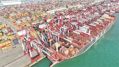 装载新能源汽车等“新三样”产品的集装箱鱼贯而出,通往全球各地的集装箱航线不断加密,超大型集装箱船作业屡创效率纪录……在山东港口青岛港前湾港区,这些变化释放出中国外贸逐渐回暖的积极信号,也成为航运枢纽影响力最直观的图景。