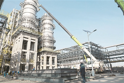 在海湾化学三期项目建设现场,几十米高的化工塔已然矗立起来,每天有2300余名施工人员穿梭“金属丛林”之中开展现场作业。目前项目主体安装已经基本结束,施工人员正在开展吹扫试压、单机调试等工作。
