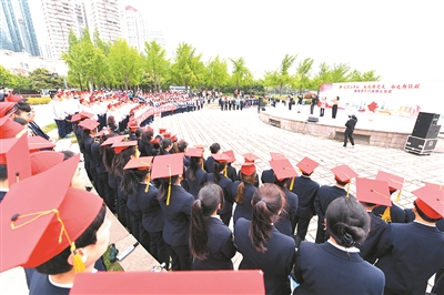 仪式现场,参与活动的年轻人代表戴上成人帽,进行成人宣誓,集体向师长、父母行“感恩礼”,并演唱了歌曲《骄傲的少年》。 蔺君妍 摄影报道
