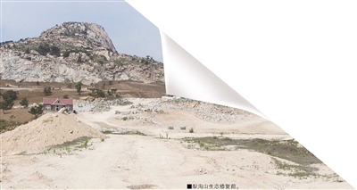 据青岛北苑环保建材有限公司负责人生竹军介绍,平度犁沟山是一个废弃矿山,曾经是当地花岗岩的最大产地。由于历史上的无序开采,原有绿色植被荡然无存,山体满目疮痍,矿坑碎石遍地,寸草不生,遇风便是尘土飞扬,成为令人头疼的风口子、沙窝子,给犁沟山造成了难以抚平的巨大“伤疤”,千疮百孔的山体,成为当地的一害。