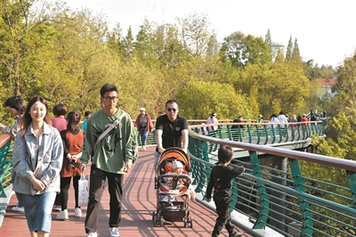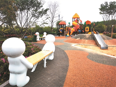 就像太平山中央公园花溪谷区域,原先是一片地势低洼、山石裸露的未开发区域,整治提升过程中利用谷地特点及林下空间,开展了层次丰富的景观绿化,打造出一处特色景观节点。肖亚丽认为,“现在入园,不仅仅是走一走看一看,而是更好地参与其中,‘沉浸式’游园。在绿道上散步、跑步,在儿童游乐设施上攀爬、嬉戏,大人、小孩都能乐在其中。”
