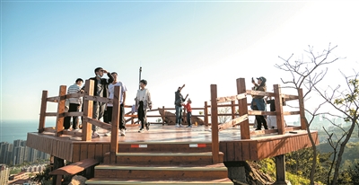 ■浮山“七观台”景点吸引众多市民登台赏景。杨志文 摄