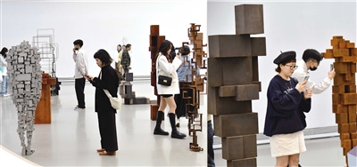 “我特地选择上午10点人少的时段进入展厅。阳光进来,屋顶格栅在地面和墙面上所形成的新的光源与作品产生了特别好的互动。从中我们能够感受到,葛姆雷先生对空间、对作品、对现场的把握。”隋建国尤其谈到了葛姆雷作品对数字技术冲击的回应,并分享了自己的观点:“作为艺术家,你不可能简单拒绝数字技术,也不能被它终止,肯定要与它博弈,利用他来阐释作品。”