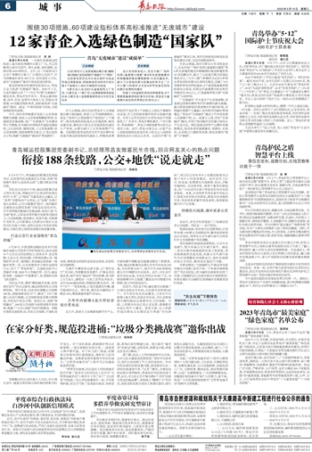 在工业领域,我市启动《青岛市工业领域碳达峰方案》编制,探索工业节能降碳路径。制定了轮胎行业低效落后产能退出“三个清单”,指导推进轮胎制造企业实施密炼、硫化设备改造,督促近百家企业完成强制性清洁生产审核,从源头减少工业固体废物产生量。在前期完成青岛经济技术开发区循环化改造并通过国家验收的基础上,积极推进莱西经济开发区等4个省级以上园区开展循环化改造,有力支持国家循环经济示范城市建设。在省工业和信息化厅公布的2022年省级绿色工厂名单中,青岛市赛轮集团、千里行集团、青岛啤酒厂、青岛力神新能源等8家企业成功入选。此外,青岛12家企业、11款产品入选国家级绿色制造名单,3家企业入选国家级绿色设计示范企业名单。这是自开展“无废城市”建设以来,我市在持续推动绿色制造体系建设方面,交出的亮眼成绩单。