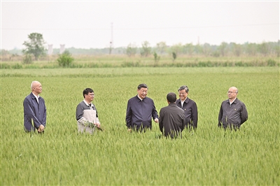 11日上午,习近平来到沧州市,考察了黄骅市旧城镇仙庄片区旱碱地麦田,了解盐碱地整治、旱碱麦种植推广及产业化情况。习近平走进麦田,仔细察看小麦长势,并向正在田里劳作的种植户、农技专家询问旱碱麦产量、价格、品质、收益等。习近平指出,开展盐碱地综合利用,是一个战略问题,必须摆上重要位置。要立足我国盐碱地多、开发潜力大的实际,发挥科技创新的关键作用,加大盐碱地改造提升力度,加强适宜盐碱地作物品种开发推广,有效拓展适宜作物播种面积,积极发展深加工,做好盐碱地特色农业这篇大文章。
