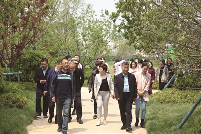 青岛市生态环境局生态保护处、西海岸新区城市更新和城市建设指挥部办公室、青岛市生态环境局西海岸新区分局、隐珠街道办事处、青岛日报报业集团、青岛万科的相关领导共同参加了活动的启幕仪式,并组成观摩团,从劝学公园为起点进行参观,零距离的感受“双公园小区”——海岸万科城。