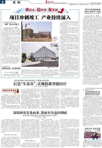 本报5月21日讯 《数字青岛发展规划(2023—2025年)》日前发布,提出,青岛将以“数字中国”标杆实践区为引领,围绕省内勇当龙头、国内争先进位、全球彰显特色定位要求,按照坚持党的领导、整体性转变、全方位赋能、革命性重塑、系统性协同、前瞻性布局总体原则,推进“5+12+N”的“数字青岛2.0工程”建设。到2025年,数字青岛建设迈上新台阶,形成“数字基础设施先进泛在、数字经济创新活跃、数字政府智慧高效、数字社会全民畅享、数字生态健康有序”的发展态势,城市发展能级全面提升,成为国内宜居、韧性、智慧城市标杆,引领山东半岛城市群数字化转型发展。