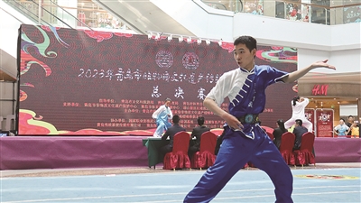 ■2023年青岛市非物质文化遗产传统武术交流赛总决赛近日在西海岸新区落幕。本届赛事由国家级非物质文化遗产螳螂拳保护中心、市武术协会主办,吸引国内外53支武术代表队、1000余名选手报名参赛,总参赛人数约3600人次。 张 羽 摄影报道