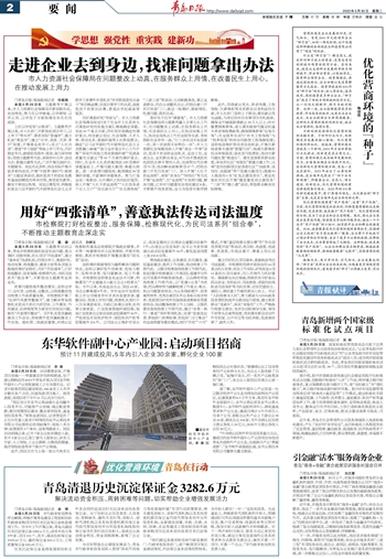 此外,园区还在与上海一家业内知名生物医药企业对接洽谈。“感谢崂山区工信局带来的产业扶持大礼包,为企业入驻免除了后顾之忧。”赵梅宇表示,把一系列产业政策送到“家门口”,该企业入驻园区的堵点正逐一被打通。