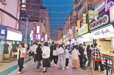 孟夏草木长,绕屋树扶疏。随着初夏生机一同勃兴的,是市北区各大商圈的夜经济。争先恐后的扫码身影、此起彼伏的收款提示音、网红店前“甩尾”的长龙队伍,无一不显示着夜色中蓬勃的经济活力。