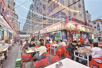 吃住行游娱购,构成了夜经济的主体。华灯初上,结束了一天工作的人们,纷纷来到市北的街头巷尾,开启“八小时以外”的夜生活。