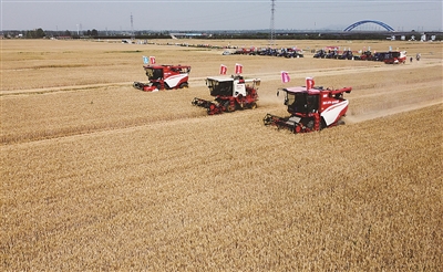本报6月11日讯 农人不知热,田间收获忙。日前,青岛小麦自西南向东北、由零星收获转向集中收获,农机农艺协奏、信息技术赋能,奏响“三夏”丰产丰收曲。