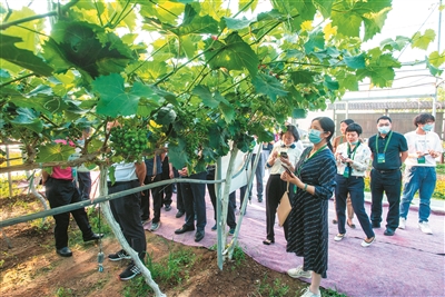 水集街道茂芝场现代设施农业产业园占地1500亩,总投资5000万元,主要种植藤稔葡萄和阳光玫瑰葡萄。目前,这里已成为国家级特色葡萄产业基地。其中,产业园的连体式避雨大棚是目前北方地区最先进的葡萄栽培模式,获得国家级避雨栽培实用新型专利。“从最初的单体式,到现在的连体式,每亩投入从7万元降到4万元,资金投入变少了,模式却更便于推广。”园区管理人员说。