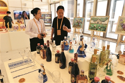 在俄罗斯国家馆内,展示销售着中国人非常熟悉的套娃、伏特加、巧克力等特色商品。一位参展商告诉记者,他们代理的阿伯朗—杜尔索(Abrau-Durso)品牌始于1870年,在俄罗斯有超过150年的酿酒历史,曾经是专供皇室的酿酒部门。时至今日,仍是克里姆林宫的酒类供应商。博览会启幕以来,不少客商表达出对这个品牌的强烈兴趣,希望能够有深入合作。除了数十种商品,俄罗斯国家馆内还展示了数十幅精美的油画作品。展馆工作人员介绍,俄罗斯油画在世界上极负盛名,拥有一大批世界级油画大师,本次展出的作品,既有俄罗斯名作的复制品,更有不少当代俄罗斯画家的新作。