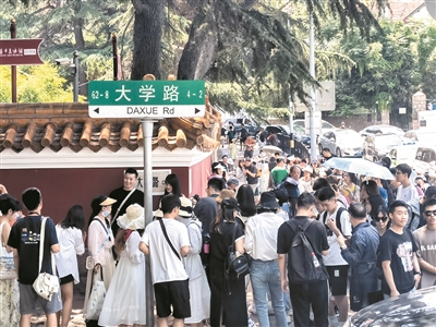 | ■青岛大学路“网红墙”吸引众多游客打卡。 王 雷 摄 |