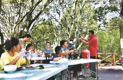 | ■游客在德国总督楼旧址博物馆学习包粽子。王 雷 摄 |