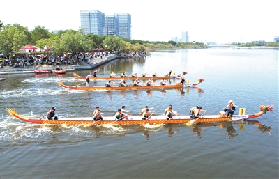 | ■6月22日,青岛市首届龙舟文化节暨第五届龙舟赛在高新区葫芦巷主题公园举办,11支代表队、200余名队员参赛。 邢志峰 摄 |