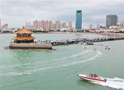 本报6月23日讯 端午假期第二天,岛城各旅游景区客流迎来显著攀升。海上游船不间断流水发船、海水浴场似“下饺子”般热闹、海洋特色景区客流超2019年同期……作为滨海旅游度假城市,丰富多元的海洋旅游产品,尽显青岛时尚、浪漫、动感的城市特质,为游客带来炎炎夏日里的海滨清凉。