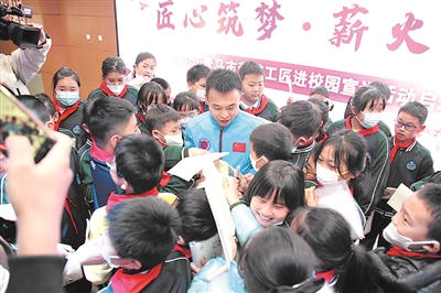 “产业工人、技术技能人才生逢盛世,当不负盛世,更当奋斗其时。”中华技能大奖获得者、全国劳动模范、中车青岛四方机车车辆股份有限公司钳工首席技师郭锐表示,社会为产业工人、技术技能人才提供了空间和舞台,技能人才更应秉承匠人初心,发扬工人阶级的伟大品格,把爱国之情、强国之志转化为技能报国的实际行动。勤学苦练、深入钻研,不断提升自身理论知识水平和创新能力,永不停止对专业技能的探索和对产品极致的追求,以怀匠心、铸匠魂、守匠情、践匠行的责任担当,为“中国制造迈向中国创造”“高端装备制造+人工智能”等领域的发展作出新贡献。