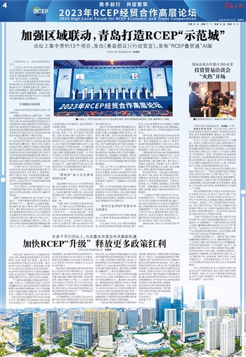 如何在更广阔的市场中,打造国际经贸文化交流与高端商务要素集聚平台和特色载体,促进“流量”变“留量”,是2023年RCEP经贸合作高层论坛的必答题。通过RCEP与亚太区域经济一体化发展主旨演讲,RCEP协定与国际航运贸易便利化、RCEP协定与推动区域内产业链供应链融合发展、RCEP协定下把握数字经济和绿色经济新机遇等平行论坛,我们可以找寻到答案。