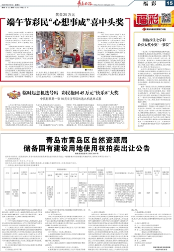 青岛日报福彩15端午节彩民“心想事成”喜中头奖 2023-06-30 2 2023年06月30日 星期五