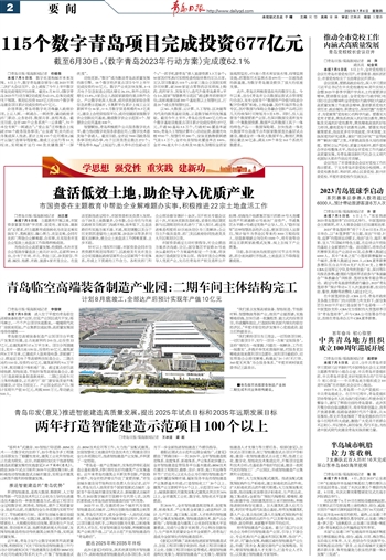 ~~~截至6月30日,《数字青岛2023年行动方案》完成度62.1%