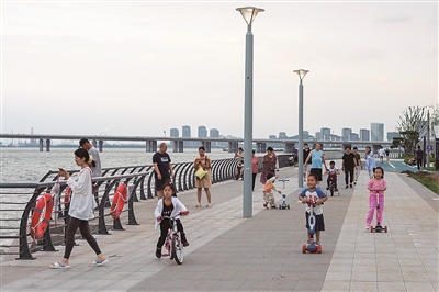 ■昔日破损的堤坝,经过改造变身滨海绿道。日前,欢乐滨海城片区滨海绿道实现了贯通,串联起了约4公里的黄金海岸线,成为后海的新打卡地。沿线建设了驿站、步行道、雕塑景观、儿童游乐区,丰富了市民的游玩体验。
