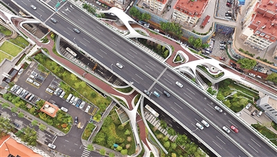 在沧口路和胶宁高架桥之间,一条银色的“飘带”呈现在人们眼前,灵动飘逸、美感十足。这是青岛历史城区首个集“交通+景观+体验”于一体的大型基础设施——浮岛公园。浮岛公园不同于传统过街天桥,它的跨度更广、面积更大,并践行“公园城市”理念设计布局景观小品,将人行系统与“空中花园”融为一体。