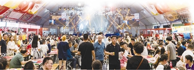 在今年金沙滩啤酒城设立的9个啤酒大篷中,有1个首次亮相的新朋友,那就是葡萄牙啤酒品牌——超级波克啤酒大篷。