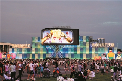 绚丽的光影将夜晚的金沙滩啤酒城装扮成一片璀璨的星河。据了解,第33届青岛国际啤酒节期间,“青岛礼物”巨幅裸眼3D大屏、“炫彩啤酒城”大型梦幻建筑实体光影秀等将每天多频次上演,为市民游客带来震撼的视听盛宴。