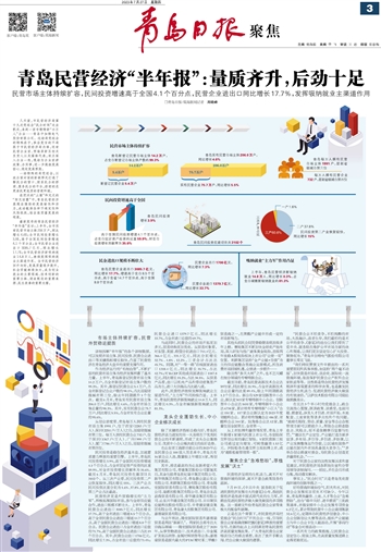 ~~~民营市场主体持续扩容,民间投资增速高于全国4.1个百分点,民营企业进出口同比增长17.7%,发挥吸纳就业主渠道作用