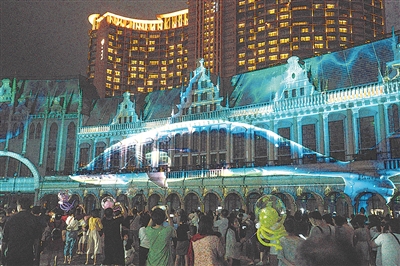 “享受完啤酒城内清爽的啤酒,再来感受一场光与影的‘邂逅’,真是太‘巴适’了。”四川游客张曦所说的“邂逅光影”,指的是青岛红树林度假世界的第五届光影狂欢节。