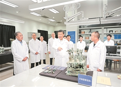 习近平十分关心汉江流域历史文化传承和生态保护。7月29日,在返京途中,习近平走下列车,在陕西省委书记赵一德、省长赵刚陪同下,来到汉中市考察。习近平参观汉中市博物馆有关历史文物展陈,了解汉中历史文化、文物保护情况。他指出,文物承载灿烂文明,传承历史文化,维系民族精神。要发挥好博物馆保护、传承、研究、展示人类文明的重要作用,守护好中华文脉,并让文物活起来,扩大中华文化的影响力。汉中藤编等非物质文化遗产久负盛名,要发展壮大特色产业,更好带动群众增收致富。离开博物馆时,附近的乡亲们围拢过来热情欢呼“总书记好”。习近平亲切地对大家说,我在2008年汶川大地震抗震救灾时来过汉中,这些年一直牵挂着这里。这次来,看到这里发展变化很大,城市井然有序,很欣慰。他祝愿大家工作好、生活好、家庭幸福。