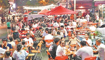 烟火可亲,诗意可寻。台东夜市、李村夜市、吕家庄夜市……烟火蒸腾中尽显市井生活。伴随台东三路步行街在城市更新中改造升级,昔日的美食小巷华丽变身,“恣儿街”新标牌闪闪发光。清凉夏夜,市民和天南海北的游客在此汇集,共同品尝独具特色的美味小吃,感受城市夜晚的味蕾律动。