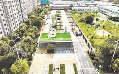 史琼介绍,该项目以“林”为设计理念,创新打造林下共享空间概念,在土地规划允许范围内最大化开发挖潜,将原本脏乱差的城市“夹心地”更新为绿意盎然的林下空间,有效缓解了易通路交通拥堵及停车难问题,为周边居民提供了一处可停车、可休闲的“城市绿岛”。