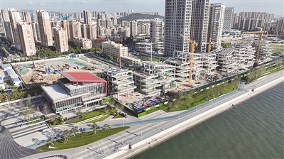 “目前,项目一期正在进行墙体砌筑等二次结构施工,下个月将进入主体结构验收阶段,验收之后,便可装置玻璃幕墙及室外工程施工。”中建二局青岛滨海国际中心项目生产经理刘宜山介绍,为了应对海边环境,项目用料都为防腐阻锈材料,为了遵循设计风格,每栋楼每层的玻璃幕墙造型不一,安装难度大,预计项目一期2024年9月竣工。