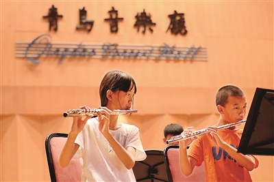 8月9日晚,乐团一行抵达青岛。10日一大早,他们已经开始在音乐厅认真彩排。先把曲子练好,再去看海,这是老师和孩子们一致认同的安排。《去有海的地方》是孩子们最爱的曲子,“马上就能看到大海了,太兴奋了,吹得节奏都变快了。”李作炜开心地说。