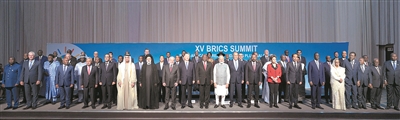 会议由南非总统拉马福萨主持,巴西总统卢拉、印度总理莫迪、俄罗斯总统普京(线上)和60多位非洲国家及其他新兴市场和发展中国家领导人或代表,以及联合国秘书长古特雷斯、新开发银行行长罗塞夫等国际和地区组织负责人出席。