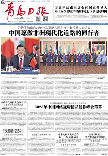 | 青岛日报社(集团)数字报纸(包括《青岛日报》、《青岛早报》、《青岛晚报》、《老年生活报》)的一切内容(包括但不限于文字、图片、PDF、图表、标志、标识、商标、版面设计、专栏目录与名称、内容分类标准以及为读者提供的任何信息)仅供青岛日报社(集团)读者阅读、学习研究使用,未经青岛日报社(集团)及相关权利人书面授权,任何单位及个人不得将青岛日报社(集团)数字报纸(包括《青岛日报》、《青岛早报》、《青岛晚报》、《老年生活报》)所登载、发布的内容用于商业性目的,包括但不限于转载、复制、发行、制作光盘、数据库、触摸展示等行为方式,或将之在非本站所属的服务器上作镜像。否则,青岛日报社(集团)将采取包括但不限于网上公示、向有关部门举报、诉讼等一切合法手段,追究侵权者的法律责任。 |