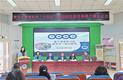 2023年2月8日,崂山六中加挂“市教育科学研究院附属学校”校牌。自此,市教科院的研训资源便在这里落地开花。“教研员每周至少一天到校听课、评课,聚焦老师们课堂教学中显露出的问题,提供行之有效的教学策略指导,并带领老师们深研新课标,解决我们在新课标实施过程中的疑惑。”何胜明是崂山六中的一名物理教师,最近在青岛市优质课比赛中获得一等奖。他坦言,成绩的取得离不开区市教研员和学科专家经常到校有针对性地为课堂教学把脉、问诊,这让自己得到了前所未有的快速成长。