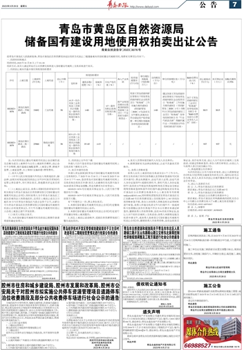 经青岛市黄岛区人民政府批准,青岛市黄岛区自然资源局决定以拍卖方式出让二幅储备地块的国有建设用地使用权。现将有关事项公告如下: