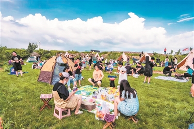 吕鹏飞介绍,以河头店镇为例,依托高格庄水库打造“龙泉云堤”,开设采摘、露营、烧烤等体验式旅游项目;南墅镇则利用极具年代感的工业厂房,建起青山湖影视基地,吸引剧组和游客纷至沓来;院上镇的废弃矿山变身“九顶庄园”欧式城堡,音乐节、篝火晚会、星空露营等休闲体验不断上演……