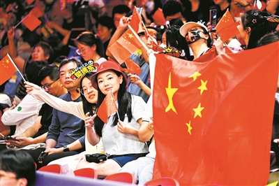 比赛场馆,BGM“又燃又高级”“没有一首歌是白放”,可以“秒变”大型演唱会现场。比如,奥体中心游泳馆里千人合唱《千年等一回》;“撑竿跳女神”亚运三连冠,赛场上响起了李玲最喜欢的《一次就好》……年轻人担纲的控音台,生动演绎了“年轻人更懂年轻人”。而在篮球比赛现场,拉拉队员们抛起水袖、舞起油纸伞,展示“国风+现代”的融合魅力……