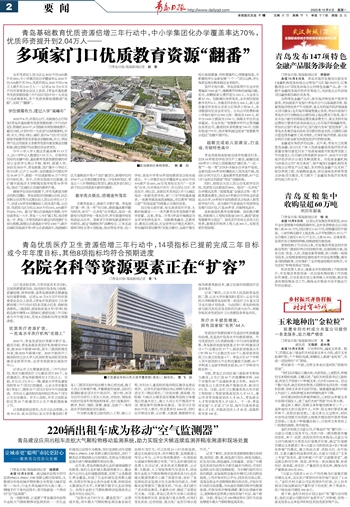 青岛优质医疗卫生资源倍增三年行动中,14项指标已提前完成三年目标或今年年度目标,其他8项指标均符合预期进度~~~