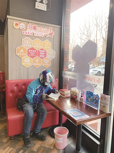 在饿了么万达广场站站长张帅看来,骑手们与“政府”的关系更为具体。“工会、交警部门和街道社区都与我们举行过座谈,统计行业内党员的数量,也了解我们对一些保障措施的需求,比如要建设骑手驿站、电动车停车场。”他说,“其实骑手们要求不高,因为他们大部分时间都在路上,只需要有地方接热水、停车就行。”