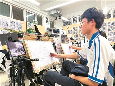 “速写(综合能力)跟部分高校校考科目中的命题创作有些类似。这要求考生除了要有扎实的速写基本功、丰富的艺术积累、审美修养、创作能力等,在实际考试中还要能够调动所学,准确表达考题内容,对画面的完整度、充分度以及精细度都有极高的要求。”青岛十七中美术教师卢姿含告诉记者。不少业内人士认为,此次调整一是为了真正选拔出有一定美术功底、坚定想走美术道路的人才,二是为了改善生源质量,更好促进高中教育与大学教育的衔接。部分考生到了高二甚至高三临时转型学美术,基础不是特别好。这部分考生进入大学后,因欠缺一些基本的美术素养,会给大学教师授课和学生自己的学业造成一定的困扰。