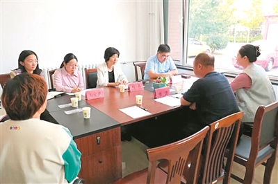 ■日前,莱西法院党组书记、院长刘英带领部分党员到莱西市水集街道深圳路社区参加“双报到”活动。
