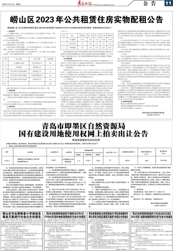 ~~~根据国家、省、市公共租赁住房相关规定,崂山区住房保障部门拟组织对2023年公共租赁住房项目进行配租。现就具体事宜公告如下: